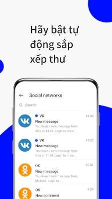 Ứng dụng đơn giản và nhanh chóng cho nhiều công việc với Mail.ru, Yandex, Gmail, Yahoo, Hotmail và các hộp thư khác. Nhận và gửi tin nhắn, chia sẻ hình ảnh và tài liệu. Nhận thông báo tức thời về tin nhắn mới. Điều chỉnh thời gian, thư mục, và các dịch vụ mà bạn muốn nhận thông báo đẩy. Bộ lọc thư rác cá nhân sẽ bảo vệ bạn khỏi thư rác gây phiền nhiễu. Vẫn kết nối với ứng dụng Mail.Ru!
