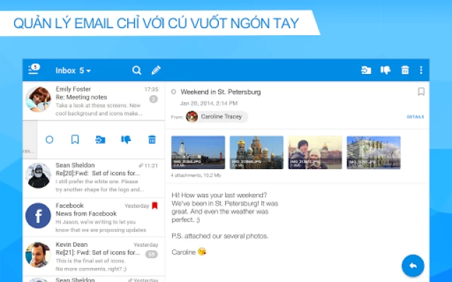 - Đồng bộ hóa đầy đủ. Không quan trọng việc bạn đã đọc, gắn cờ, hoặc di chuyển các tin nhắn trên máy tính hay trên di động. Tất cả các thay đổi của bạn sẽ được lưu lại trên máy chủ và đồng bộ giữa các thiết bị.