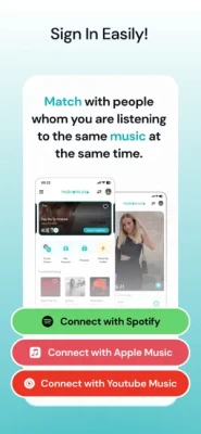 If you want, you can match according to your profile or music you listen to instantly. How is it? By connecting with your Spotify account, you actively share with us or share your favorite artists and songs that you have listened to before. We also match you with the people who are closest to your taste or listen to the same music at the same time. You can start chatting after viewing the profiles of the people you match with.