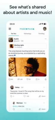 You can share posts about your favorite artists and tracks while having new friends. You don't even have to sign up, using your Spotify account to be connected would be enough. Also, it is totally free!