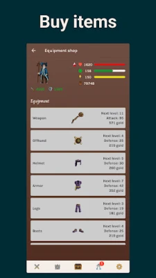 • Purchase and enhance a wide array of weapons, armor, and magical items. Evolve your gear to legendary status and become an unstoppable force.