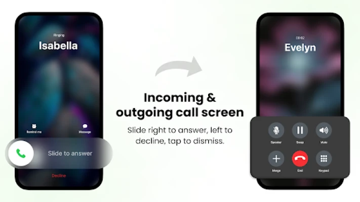 Mang đến giao diện trực quan và tinh vi cho điện thoại Android của bạn. Chỉ cần vuốt ngón tay cái vào nút "trượt để trả lời" để trả lời cuộc gọi.
