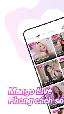 Đừng bỏ lỡ cơ hội này để trở thành một phần của cộng đồng sôi động của Mango Live. Tham gia ngay, bắt đầu phát sóng và trải qua những khoảnh khắc tuyệt vời!