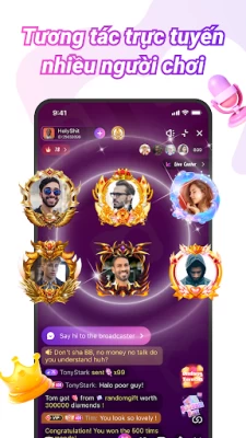 Thể hiện tình yêu và sự hỗ trợ của bạn đối với các MC bằng một loạt các quà tặng hoạt hình phong cách và đẹp mắt. Tham gia vào các phiên Trực tiếp Khách mời, nơi bạn có thể chọn Gia nhập Âm thanh hoặc Gia nhập Video để trò chuyện và kết bạn với người phát sóng. Ngoài ra, thưởng thức các trò chơi trong phòng chat để vui đùa và thu hút sự chú ý.