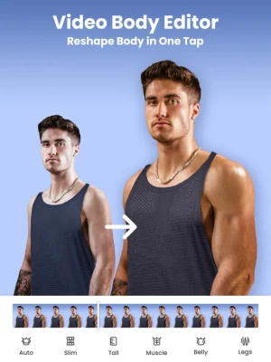 Manlook is a fantastic video body & face editor. It makes video retouch as easy as retouching a photo. Get the perfect body shape in your selfie video with one tap.