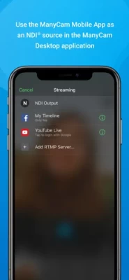 ManyCam is the most popular video switcher and streaming application for Windows and Mac and now you can stream directly from your mobile device!You can now use multiple mobile devices and smartphones to stream from different locations at the same time so your viewers are never missing the action.