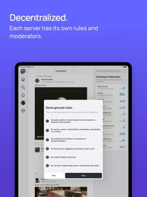 Mastodon is built with a focus on privacy and safety. Decide whether your posts are shared with your followers, just the people you mention, or the whole world. Content warnings let you hide posts containing sensitive or triggering material until you're ready to engage with them. Each community has its own guidelines and moderators to keep its members safe, and robust blocking and reporting tools help prevent abuse.