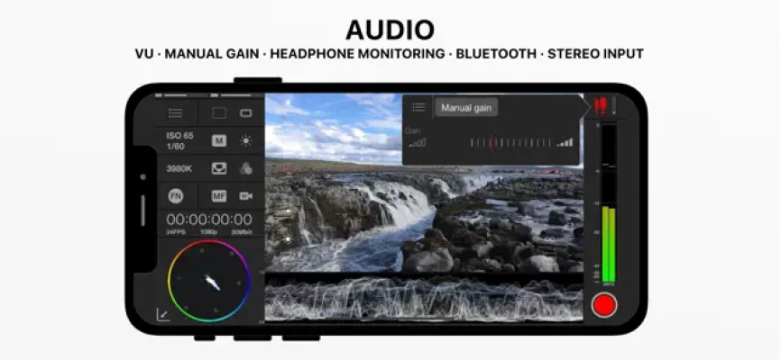 MAVIS is the ultimate pro filmmaking and broadcast camera for the iPhone. It provides professional level filming tools including focus peaking, waveform monitor, vectorscope, false color and zebras. It gives you audio controls, audio metering, custom resolutions, framerates and recordings formats. It also brings a natural interface to give you full flexible manual control while shooting.