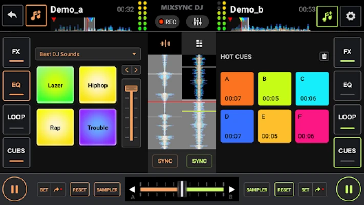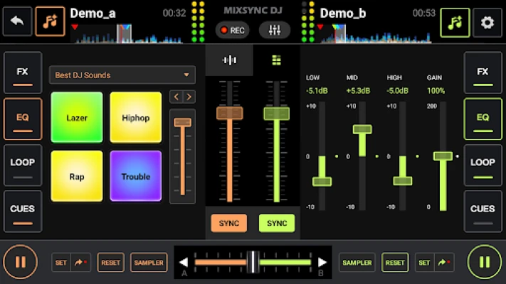 Bộ trộn nhạc DJ - Bộ trộn DJ là một bộ trộn nhạc và trộn nhạc DJ thực sự chuyên nghiệp với các hiệu ứng âm thanh, Bộ chỉnh âm, Vòng lặp, Cues & Sampler để phối lại các bài hát, tạo nhạc beat và thu âm. Với DJ Máy trộn - Máy trộn nhạc DJ, bạn có thể dễ dàng tạo và cá nhân hóa các bản phối nhạc của mình bằng cách sử dụng một loạt các công cụ trộn, hiệu ứng, tín hiệu và vòng lặp mạnh mẽ. 🔥🔥
