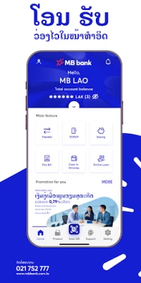App MB Laos là ứng dụng ngân hàng di động cho phép khách hàng thực hiện giao dịch mọi lúc, mọi nơi. Được phát triển trên nền tảng công nghệ thông minh, MB Laos tương thích với iOS , Android và có thể vận hành tối ưu trên mọi thiết bị có kết nối internet.