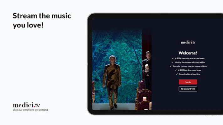 The medici.tv app is reserved for users with existing paid or free accounts. Subscribe for the incredible full experience or create a free account on the medici.tv website in order to log in to the app.
