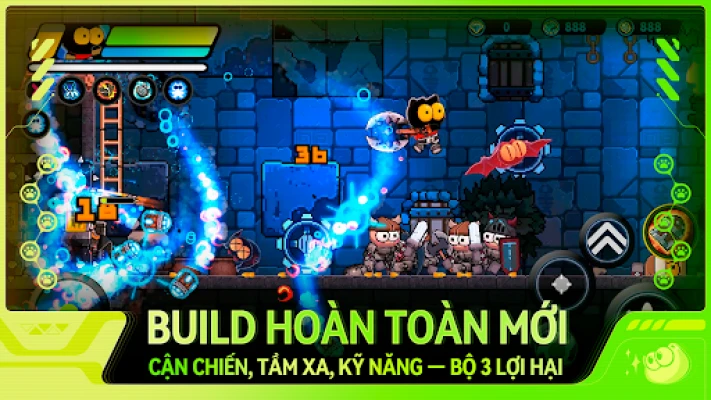 Chiến đấu đa dạng hơn! Bạn sẽ trải nghiệm chiến đấu cận chiến tay đôi lồng ghép với chiến đấu bằng súng, cho phép bạn tấn công giáp lá cà khốc liệt khi chuẩn bị cho những cuộc tấn công tầm xa. Hệ thống chiến đấu mới mẻ này sẽ lôi cuốn bạn vào những trận đấu 2D căng thẳng nhưng cũng không kém phần độc đáo.