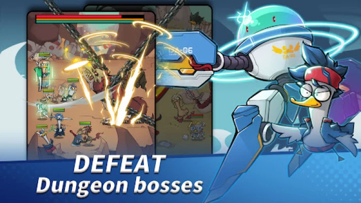 Hình thành những chú vịt siêu hạng này thành một lực lượng hùng mạnh chiến đấu, phát triển và giành được kho báu và phép thuật.