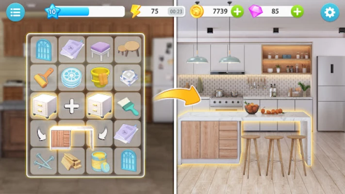 Cải tạo ngôi nhà của bạn và trang trí nó cho ngôi nhà mơ ước của bạn! Hợp nhất các mảnh vỡ và thành phần với các loại thiết bị khác nhau, sử dụng trí thông minh của bạn để tạo ra đồ nội thất và trang trí thời trang và sau đó ngôi nhà cũ của bạn đã được trang điểm lại!
