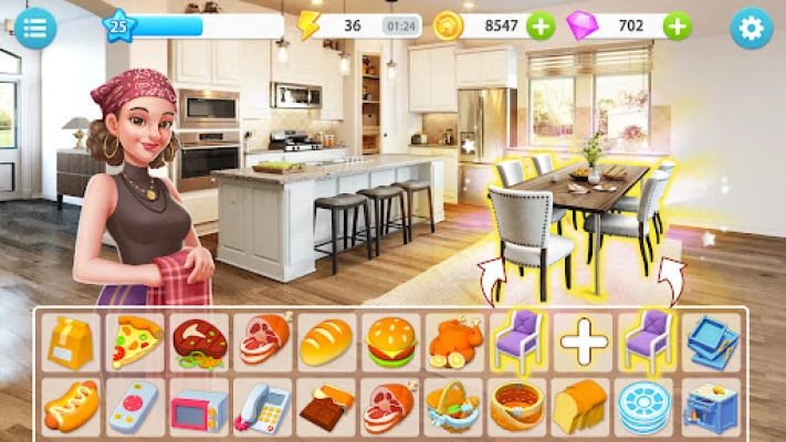 Hãy là người trang trí ngôi nhà nổi tiếng và thực hiện việc trang trí lại dinh thự & sửa sang nhà cửa! Trang trí từ phòng khách đơn giản đến phòng khách sang trọng và lắp ráp từ một công cụ đơn giản đến đồ nội thất tinh tế. Hợp nhất nhiều công cụ và hoàn thành đơn đặt hàng! Bạn càng hoàn thành nhiều đơn hàng và bạn càng có thể nhận được nhiều đồ đạc tinh tế hơn! Sử dụng thiết bị và đồ nội thất mà bạn đã lắp ráp để cải tạo ngôi nhà bạn đang sống! Làm thiết kế ngôi nhà tốt nhất và hiển thị nó cho bạn bè của bạn!