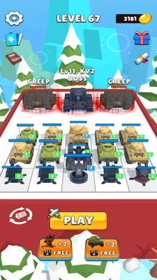 Introducing "Merge Tanks Super": a strategic mobile game where you merge tanks to create powerful war machines and engage in intense tank battles! Merge Tank Super combines strategy and action as you merge two tanks to upgrade and confront enemy tanks on the battlefield. It's a perfect blend of merge mechanics and tank warfare, designed to keep you engaged with its strategic gameplay and stunning visuals.