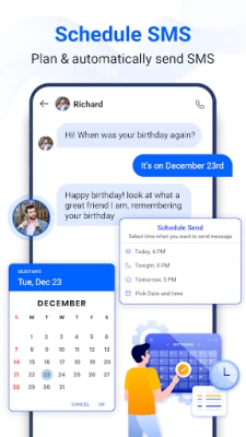 • Schedule Messages – Plan texts ahead for birthdays, reminders, or special events.