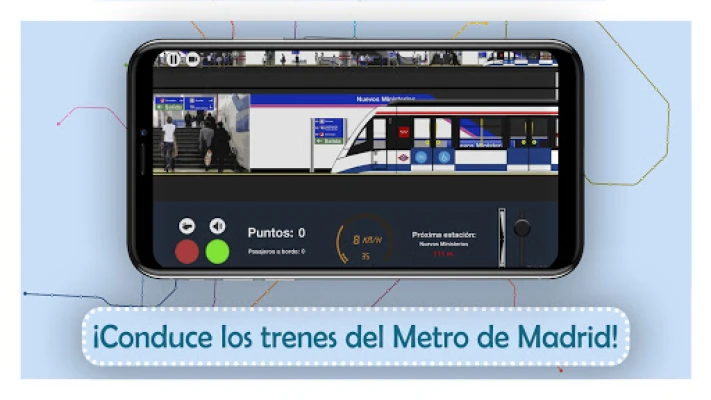 ¡Conduce los trenes del Metro de Madrid! En este videojuego 2D podrás conducir los trenes reales que ruedan por la red del Metro de Madrid. Además de conducirlos, podrás transportar pasajeros, reproducir megafonías de "Próxima estación...", abrir y cerrar puertas, etc. Visualmente es lo más parecido al Metro de Madrid que te vas a encontrar, ¡en un futuro estarán disponibles todas las líneas del suburbano madrileño! De momento las líneas disponibles son la L12 (MetroSur), L8 y L11.