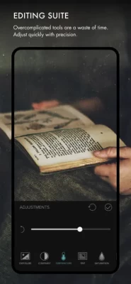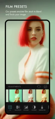 Overcomplicated adjustments are for the birds. Adjust your photos with professional-grade tools like Exposure, Contrast, Tint, White Balance, Fade, Black and White, Highlights/Shadows, Sharpness, and Saturation. Included are 30 film presets that emulate popular film stocks.