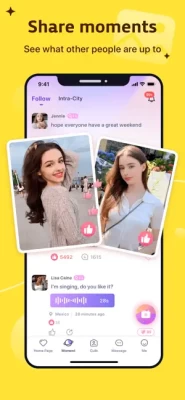 In MeYo, you can play with others nearby in the city by text, voice, image or many other ways to make friends easily!