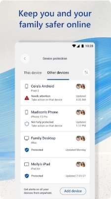 • Kiểm tra trạng thái bảo mật cho các thiết bị của gia đình bạn.