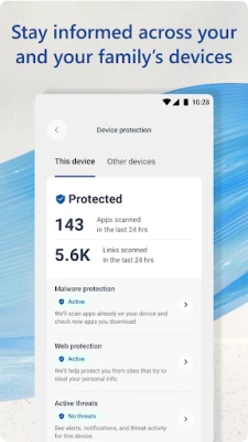 • Bảo vệ thiết bị của bạn khỏi các mối đe dọa từ phần mềm độc hại, phần mềm gián điệp và phần mềm tống tiền mới và hiện có bằng tính năng quét liên tục.