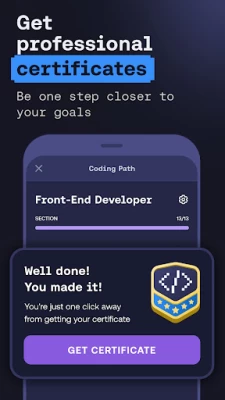 Use AI-powered learning to track your progress and receive tailored feedback, making Mimo a coding app and a personal tutor in your pocket. Our AI learning approach helps you learn programming efficiently, guiding you through complex topics easily. Practice what you learn in our dedicated Practice tab and receive instant feedback to accelerate your progress.