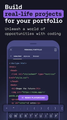 Learn to code in 5 minutes daily and quickly boost your coding skills. Discover a flexible way to learn coding with Mimo learn to code, the app that makes programming accessible even on a busy schedule. Just a few minutes a day with Mimo coding app can grow your AI coding skills through interactive, hands-on lessons designed to fit right into your day. Whether new to coding or looking to deepen your knowledge, Mimo offers a focused, achievable way to make real progress—at your own pace. Our app covers popular programming languages like Python, HTML, and JavaScript. It provides the tools you need to succeed in coding, software engineering, and software development.