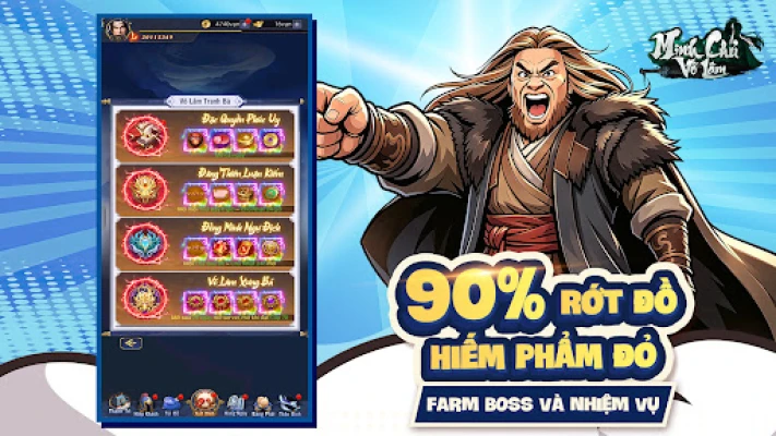 Không cần cày cuốc, không tốn thời gian – chỉ với vài thao tác, bạn có thể chiêu mộ anh hùng, xây dựng đội hình chiến thuật, và tự động chiến đấu để leo top Võ Lâm.