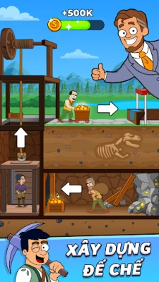Hãy thử các mỏ khác nhau để kiếm thêm tiền! Bạn có muốn đến thăm Đảo Bình Minh và chiêm ngưỡng những mỏ ngọc lục bảo không? Đừng quên thuê Siêu quản lý để giúp bạn thu thập vàng trong khi thư giãn!