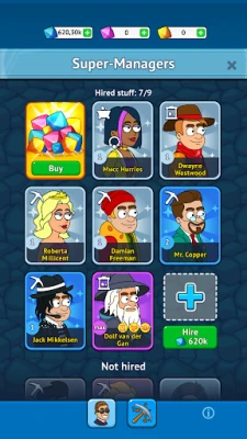 Phát triển nhân viên của bạn để tăng hiệu quả và thu nhập nhàn rỗi của bạn. Làm việc chăm chỉ hơn, kiếm được nhiều tiền và vàng hơn! Bạn sẽ quản lý cả công nhân nam và nữ tại nhà máy khai thác vàng tap tap của mình - hãy xem ngoại hình của họ thay đổi như thế nào theo cấp độ nâng cấp của họ trong trò chơi mô phỏng này. Thuê những người quản lý hiếm hoi để kiểm soát quy trình làm việc. Mỗi người quản lý đều có tài năng riêng để thúc đẩy quy trình làm việc và động lực.