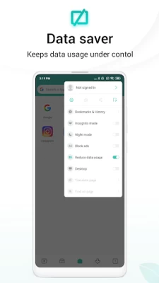 💰Data saver: In Mint Browser, you can block ads and restrict loading images automatically to save mobile data.