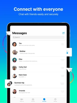 Send text messages, voice messages, video messages with all your friends and family easily, quickly and securely.