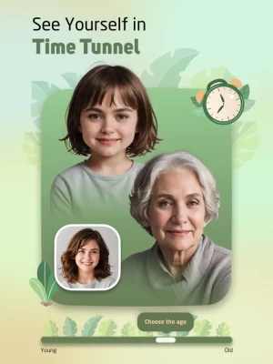 -See if in the future you look like your parents or grandparents? Have you preserved your childhood photo? Take time shuttle to see your face at different ages.