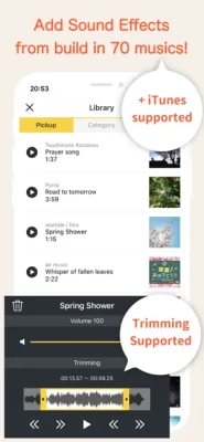 MixClip is a simple and easy-to-use video editor. You can easily express your feelings that are usually difficult to convey by using the ticker tape function as well as transition effects and animations to create scenes. You can also trim, crop, and rotate your video. Music can of course be selected from iTunes, and there are many atmospheric tracks at your disposal.