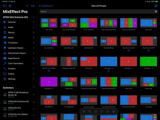Customize the look of your switcher interface with separate iPhone, Landscape, and iPad-optimized layouts. Choose from 20 panels to include in your layouts.