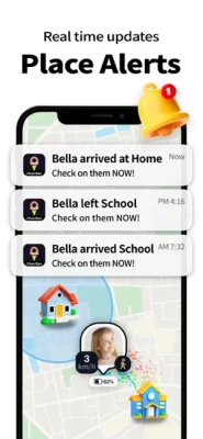 •Receive real-time alerts when friends or family are about to arrive, arrive, or leave home, work, and school