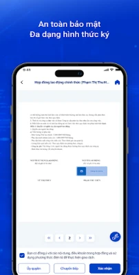 - Ký kết hợp đồng - Quản lý mẫu hợp đồng - Quản lý danh sách hợp đồng đã tạo và hợp đồng tổ chức - Quản lý danh sách hợp đồng đã nhận và hợp đồng được chia sẻ - Thống kê, báo cáo cáo trạng thái hợp đồng
