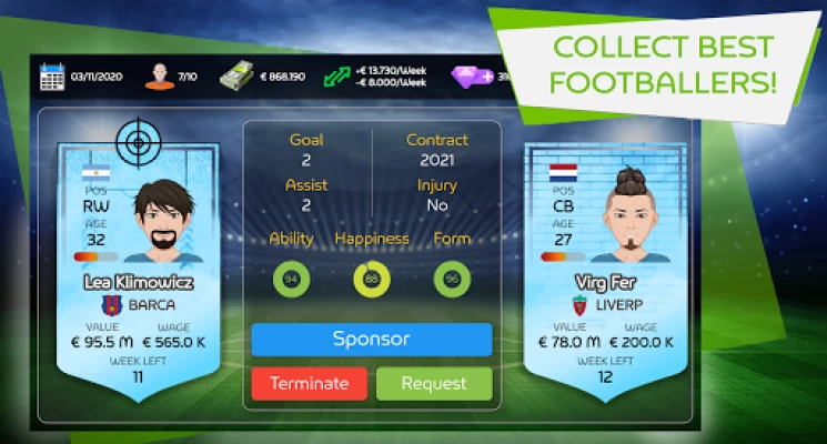Create Your Own Agency! Enjoy the management agency you set up with many famous players. Deal with surprise dilemmas and events and keep your players happy in this adventure.