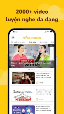 Các bài nghe của Mochi Listening giúp bạn làm quen với các chủ đề thường gặp trong cuộc sống: Family, School, Education, Science, Sports, Career, Economics, Politics,… được sắp xếp dựa theo năng lực cá nhân giúp bạn có thể dễ dàng luyện nghe tiếng Anh phù hợp với trình độ.
