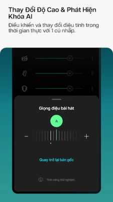 -Thay đổi cao độ: Điều khiển và thay đổi tông bằng 1 cú nhấp chuột. Thay đổi cao độ để phù hợp với quãng giọng của bạn