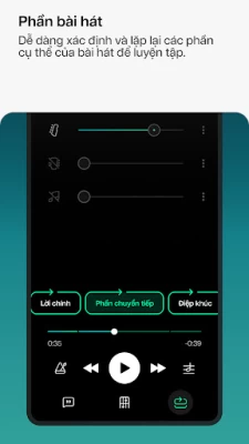 -Cắt và lặp phần nhạc: Kiểm soát và chọn thời điểm nhạc bắt đầu và kết thúc để luyện tập các phần cụ thể của bài hát