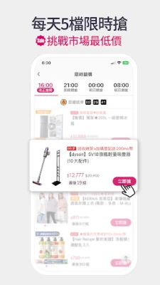 2. 限時搶購:每天5檔限時搶、每人限購3組,APP限定搶先提醒