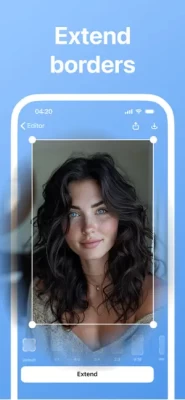 To extend the borders of you photo, first import your photo and choose the aspect ratio of the canvas. Move and scale your photo inside the canvas. Tap on Generate to fill the borders. You may want to try several times and choose the best variant.
