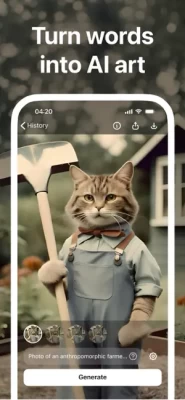 Are you a designer and looking for a special image for your work? You can easily generate it in Monet: on the main screen, choose "Create image from text", then describe what you want to generate, tap Generate and get a batch of images. You can generate a similar image following the style of the original one by tapping on Variations.