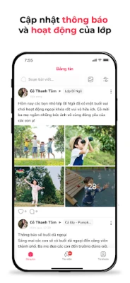 - Bảng tin: Bảng tin là nơi giáo viên đăng các thông báo và bài viết về hoạt động học tập của trẻ. Giáo viên và phụ huynh có thể tương tác thả tim và bình luận vào bài viết.
