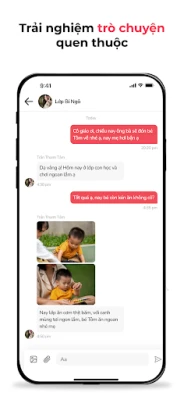 - Tin nhắn: Khi cần trao đổi riêng với nhau về tình học học tập của trẻ, giáo viên và phụ huynh có thể trò chuyện qua tính năng Tin nhắn. Trải nghiệm nhắn tin quen thuộc như khi trò chuyện qua các kênh giao tiếp thường ngày, có thể gửi ảnh/ video hoặc đính kèm file trong tính năng này