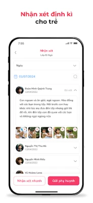 - Nhận xét: Giáo viên gửi đến phụ huynh nhận xét về tình hình học tập của con định kì theo ngày, theo tuần hoặc theo tháng