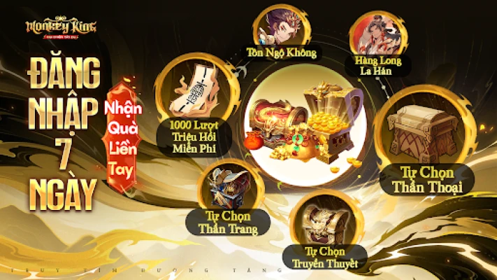 Chỉ cần đăng nhập lần đầu, bạn sẽ được tặng ngay đội hình Tây Du huyền thoại, giúp bạn dễ dàng bắt đầu hành trình chinh phục. Hãy tập trung xây dựng chiến thuật và nâng cấp đội hình để sẵn sàng tham gia vào các trận chiến đỉnh cao.
