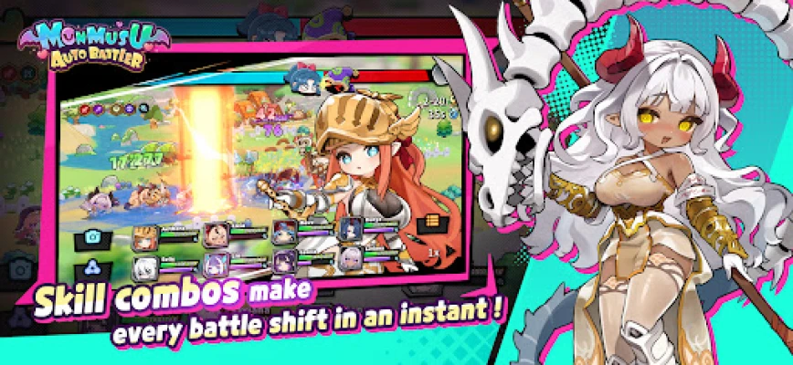 Simple controls + auto battle. Formation and skill combos decide the outcome.
